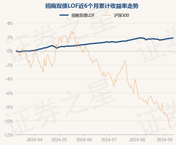 证券之星消息,9月11日,招商双债LOF最新单位净值为1.5675元,累计净值为1.7065元,较前一交易日上涨0.03%。历史数据显示该基金近1个月上涨0.11%,近3个月上涨0.82%,近6个月上涨1.86%,近1年上涨5.06%。该基金近6个月的累计收益率走势如下图: