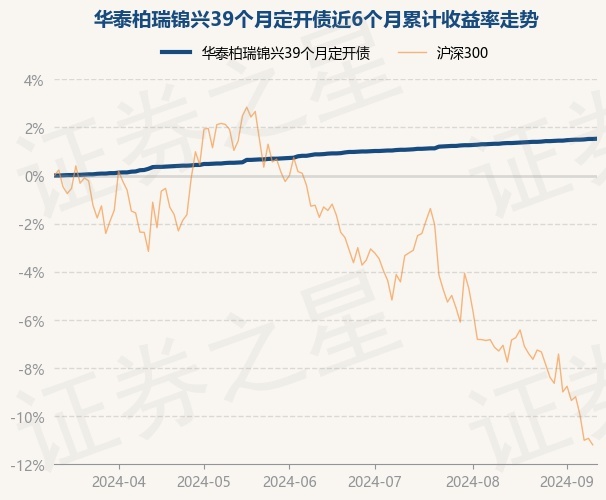 证券之星消息,9月11日,华泰柏瑞锦兴39个月定开债最新单位净值为1.0153元,累计净值为1.1164元,较前一交易日上涨0.01%。历史数据显示该基金近1个月上涨0.21%,近3个月上涨0.67%,近6个月上涨1.53%,近1年上涨2.59%。该基金近6个月的累计收益率走势如下图: