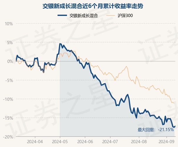 证券之星消息,9月11日,交银新成长混合最新单位净值为2.712元,累计净值为3.112元,较前一交易日上涨0.33%。历史数据显示该基金近1个月下跌4.34%,近3个月下跌14.61%,近6个月下跌17.27%,近1年下跌21.25%。该基金近6个月的累计收益率走势如下图: