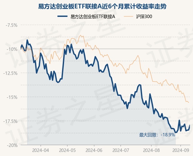 证券之星消息,9月11日,易方达创业板ETF联接A最新单位净值为1.6231元,累计净值为1.6231元,较前一交易日上涨1.13%。历史数据显示该基金近1个月下跌2.16%,近3个月下跌12.06%,近6个月下跌15.95%,近1年下跌23.29%。该基金近6个月的累计收益率走势如下图: