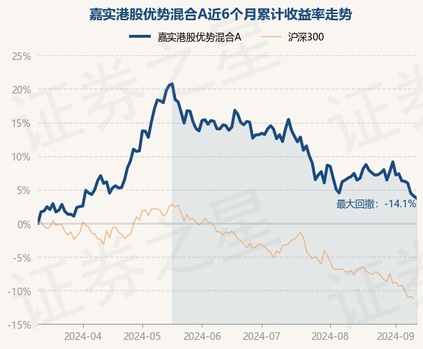 证券之星消息,9月11日,嘉实港股优势混合A最新单位净值为0.7462元,累计净值为0.7462元,较前一交易日下跌0.32%。历史数据显示该基金近1个月下跌2.83%,近3个月下跌9.07%,近6个月上涨3.73%,近1年下跌3.62%。该基金近6个月的累计收益率走势如下图: