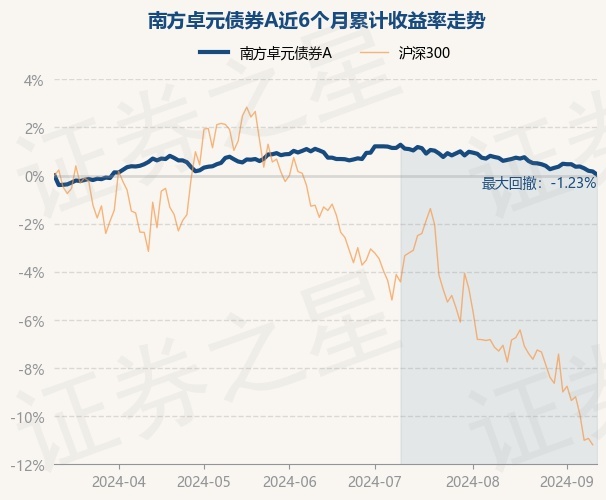 证券之星消息,9月11日,南方卓元债券A最新单位净值为1.0643元,累计净值为1.3417元,较前一交易日下跌0.13%。历史数据显示该基金近1个月下跌0.69%,近3个月下跌0.96%,近6个月上涨0.04%,近1年上涨2.51%。该基金近6个月的累计收益率走势如下图: