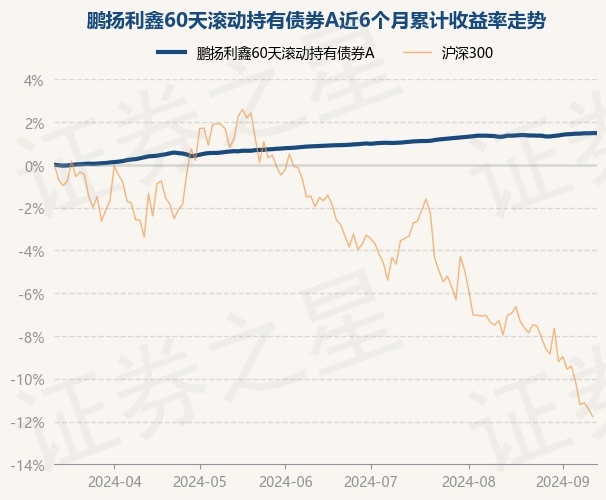 证券之星消息,9月12日,鹏扬利鑫60天滚动持有债券A最新单位净值为1.0942元,累计净值为1.0942元,较前一交易日上涨0.0%。历史数据显示该基金近1个月上涨0.18%,近3个月上涨0.63%,近6个月上涨1.49%,近1年上涨3.62%。该基金近6个月的累计收益率走势如下图: