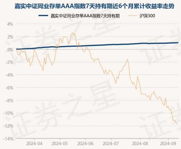 证券之星消息,9月12日,嘉实中证同业存单AAA指数7天持有期最新单位净值为1.0524元,累计净值为1.0524元,较前一交易日上涨0.0%。历史数据显示该基金近1个月上涨0.14%,近3个月上涨0.44%,近6个月上涨1.02%,近1年上涨2.3%。该基金近6个月的累计收益率走势如下图: