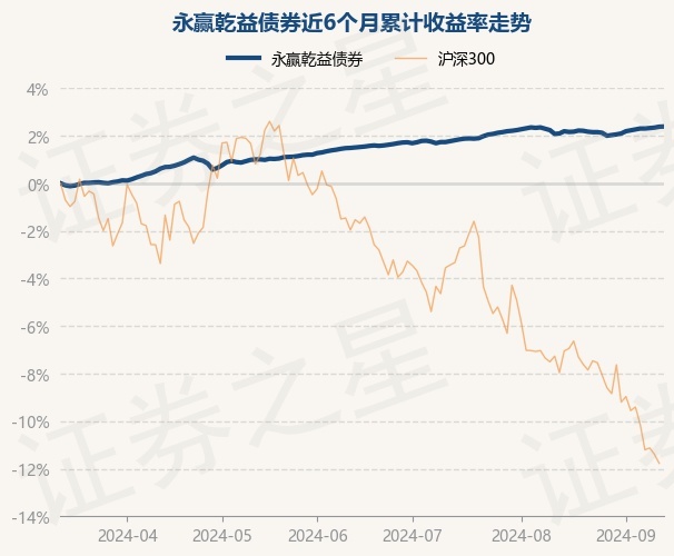 证券之星消息,9月12日,永赢乾益债券最新单位净值为1.0807元,累计净值为1.1147元,较前一交易日上涨0.01%。历史数据显示该基金近1个月上涨0.31%,近3个月上涨0.9%,近6个月上涨2.39%,近1年上涨4.81%。该基金近6个月的累计收益率走势如下图: