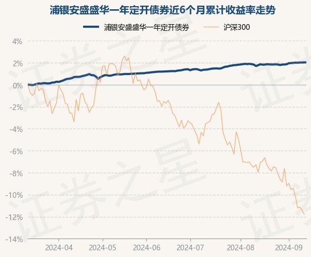 证券之星消息,9月12日,浦银安盛盛华一年定开债券最新单位净值为1.036元,累计净值为1.118元,较前一交易日上涨0.0%。历史数据显示该基金近1个月上涨0.34%,近3个月上涨0.85%,近6个月上涨2.05%,近1年上涨3.99%。该基金近6个月的累计收益率走势如下图:
