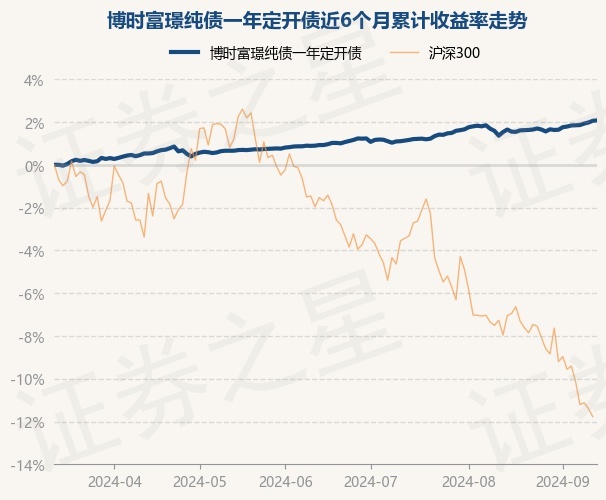 证券之星消息,9月12日,博时富璟纯债一年定开债最新单位净值为1.0276元,累计净值为1.0929元,较前一交易日上涨0.02%。历史数据显示该基金近1个月上涨0.71%,近3个月上涨2.11%,近6个月上涨2.08%,近1年上涨4.15%。该基金近6个月的累计收益率走势如下图: