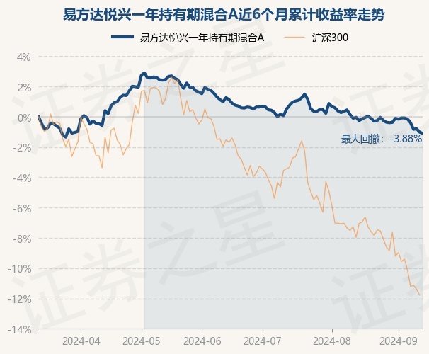 证券之星消息,9月12日,易方达悦兴一年持有期混合A最新单位净值为0.974元,累计净值为0.974元,较前一交易日下跌0.08%。历史数据显示该基金近1个月下跌1.0%,近3个月下跌2.2%,近6个月下跌1.1%,近1年下跌3.37%。该基金近6个月的累计收益率走势如下图: