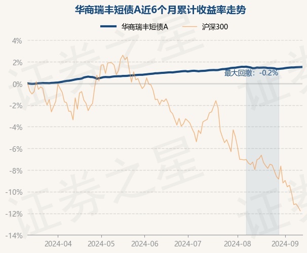 证券之星消息,9月12日,华商瑞丰短债A最新单位净值为1.1497元,累计净值为1.1869元,较前一交易日上涨0.01%。历史数据显示该基金近1个月上涨0.11%,近3个月上涨0.58%,近6个月上涨1.52%,近1年上涨3.4%。该基金近6个月的累计收益率走势如下图:
