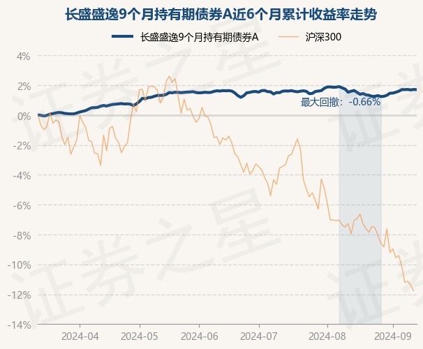 证券之星消息,9月12日,长盛盛逸9个月持有期债券A最新单位净值为1.0446元,累计净值为1.0555元,较前一交易日下跌0.01%。历史数据显示该基金近1个月上涨0.17%,近3个月上涨0.08%,近6个月上涨1.7%,近1年上涨4.37%。该基金近6个月的累计收益率走势如下图: