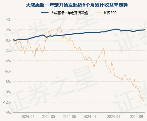 证券之星消息,9月12日,大成惠昭一年定开债发起最新单位净值为1.0405元,累计净值为1.0605元,较前一交易日上涨0.03%。历史数据显示该基金近1个月上涨0.26%,近3个月上涨0.75%,近6个月上涨1.96%,近1年上涨4.2%。该基金近6个月的累计收益率走势如下图: