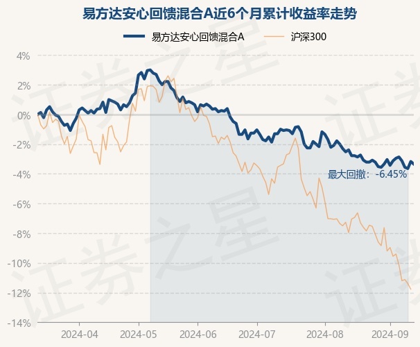 证券之星消息,9月12日,易方达安心回馈混合A最新单位净值为2.225元,累计净值为2.225元,较前一交易日下跌0.18%。历史数据显示该基金近1个月下跌0.85%,近3个月下跌3.72%,近6个月下跌3.34%,近1年下跌4.34%。该基金近6个月的累计收益率走势如下图: