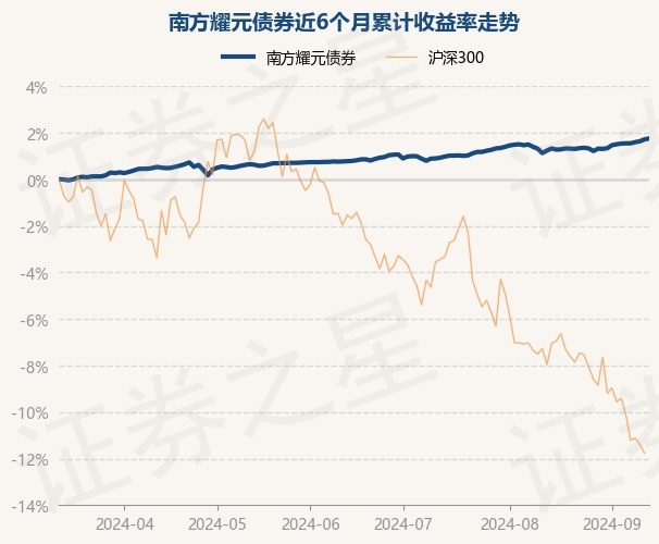 证券之星消息,9月12日,南方耀元债券最新单位净值为1.0197元,累计净值为1.0527元,较前一交易日上涨0.04%。历史数据显示该基金近1个月上涨0.62%,近3个月上涨0.99%,近6个月上涨1.76%,近1年上涨3.37%。该基金近6个月的累计收益率走势如下图: