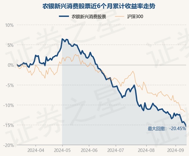 证券之星消息,9月12日,农银新兴消费股票最新单位净值为0.5116元,累计净值为0.5116元,较前一交易日下跌0.78%。历史数据显示该基金近1个月下跌5.52%,近3个月下跌15.37%,近6个月下跌15.31%,近1年下跌20.79%。该基金近6个月的累计收益率走势如下图: