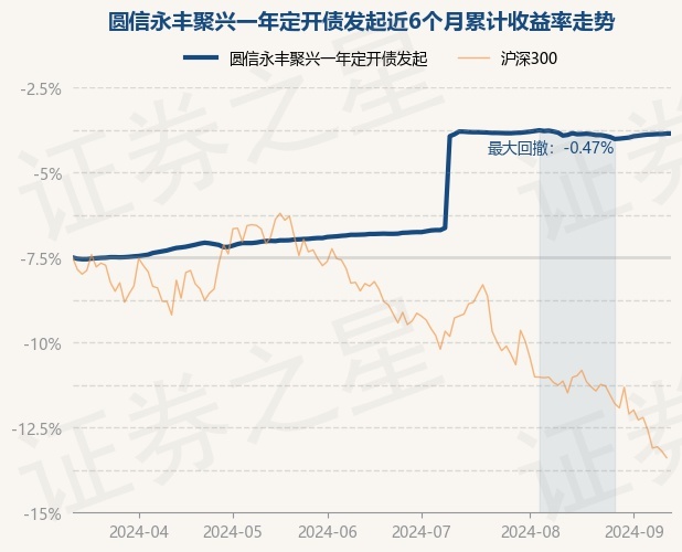 证券之星消息,9月12日,圆信永丰聚兴一年定开债发起最新单位净值为1.0771元,累计净值为1.131元,较前一交易日上涨0.0%。历史数据显示该基金近1个月上涨0.12%,近3个月上涨5.89%,近6个月上涨7.3%,近1年上涨9.83%。该基金近6个月的累计收益率走势如下图: