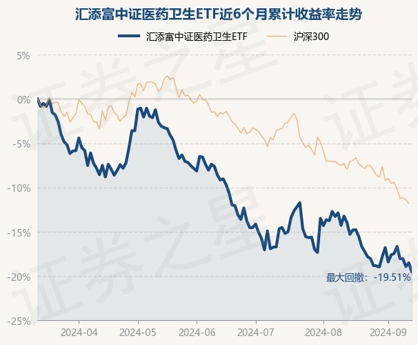 证券之星消息,9月12日,汇添富中证医药卫生ETF最新单位净值为1.1005元,累计净值为1.1005元,较前一交易日下跌1.23%。历史数据显示该基金近1个月下跌7.24%,近3个月下跌12.89%,近6个月下跌19.51%,近1年下跌23.63%。该基金近6个月的累计收益率走势如下图: