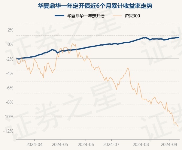 证券之星消息,9月12日,华夏鼎华一年定开债最新单位净值为1.087元,累计净值为1.1951元,较前一交易日上涨0.02%。历史数据显示该基金近1个月上涨0.41%,近3个月上涨1.51%,近6个月上涨3.63%,近1年上涨8.64%。该基金近6个月的累计收益率走势如下图: