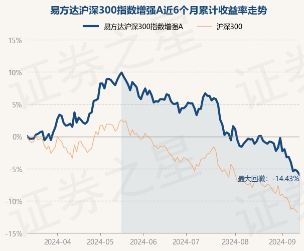 证券之星消息,9月12日,易方达沪深300指数增强A最新单位净值为0.6555元,累计净值为0.6555元,较前一交易日下跌0.56%。历史数据显示该基金近1个月下跌5.49%,近3个月下跌10.83%,近6个月下跌5.94%,近1年下跌7.73%。该基金近6个月的累计收益率走势如下图:
