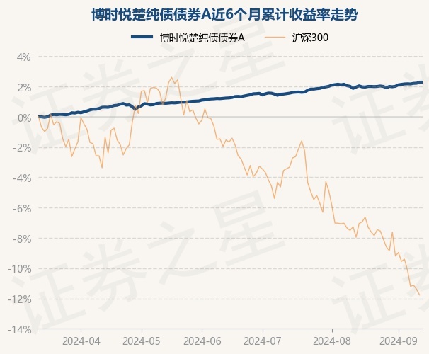 证券之星消息,9月12日,博时悦楚纯债债券A最新单位净值为1.0537元,累计净值为1.2437元,较前一交易日上涨0.0%。历史数据显示该基金近1个月上涨0.4%,近3个月上涨1.07%,近6个月上涨2.28%,近1年上涨4.34%。该基金近6个月的累计收益率走势如下图: