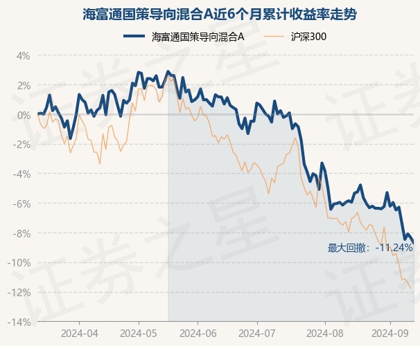 证券之星消息,9月12日,海富通国策导向混合A最新单位净值为1.5938元,累计净值为2.6329元,较前一交易日下跌0.36%。历史数据显示该基金近1个月下跌2.89%,近3个月下跌9.86%,近6个月下跌8.69%,近1年下跌10.7%。该基金近6个月的累计收益率走势如下图: