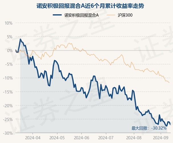 证券之星消息,9月12日,诺安积极回报混合A最新单位净值为1.547元,累计净值为1.547元,较前一交易日下跌1.15%。历史数据显示该基金近1个月下跌4.21%,近3个月下跌13.86%,近6个月下跌26.96%,近1年下跌12.35%。该基金近6个月的累计收益率走势如下图: