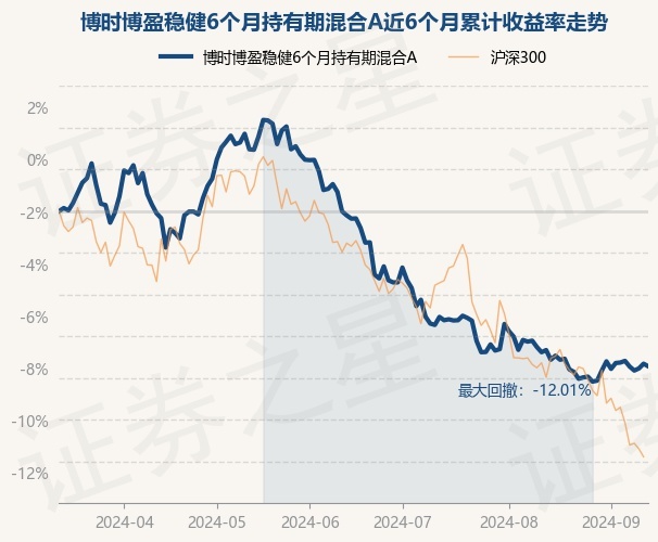 证券之星消息,9月12日,博时博盈稳健6个月持有期混合A最新单位净值为0.8216元,累计净值为0.8216元,较前一交易日下跌0.13%。历史数据显示该基金近1个月下跌0.72%,近3个月下跌8.28%,近6个月下跌7.44%,近1年下跌13.0%。该基金近6个月的累计收益率走势如下图: