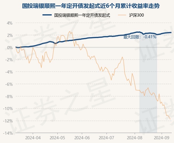 证券之星消息,9月12日,国投瑞银顺熙一年定开债发起式最新单位净值为1.0462元,累计净值为1.0712元,较前一交易日上涨0.0%。历史数据显示该基金近1个月上涨0.27%,近3个月上涨0.87%,近6个月上涨2.4%,近1年上涨4.65%。该基金近6个月的累计收益率走势如下图: