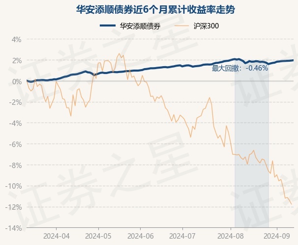 证券之星消息,9月12日,华安添顺债券最新单位净值为1.0606元,累计净值为1.0606元,较前一交易日上涨0.03%。历史数据显示该基金近1个月上涨0.27%,近3个月上涨0.76%,近6个月上涨1.96%,近1年上涨4.43%。该基金近6个月的累计收益率走势如下图: