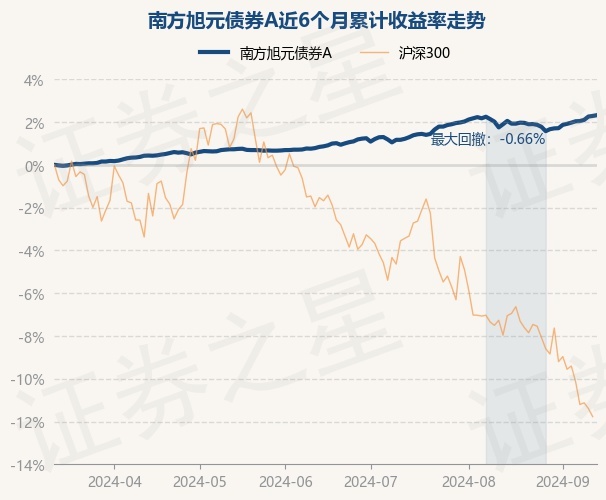 证券之星消息,9月12日,南方旭元债券A最新单位净值为1.1096元,累计净值为1.2029元,较前一交易日上涨0.04%。历史数据显示该基金近1个月上涨0.56%,近3个月上涨1.56%,近6个月上涨2.32%,近1年上涨4.35%。该基金近6个月的累计收益率走势如下图: