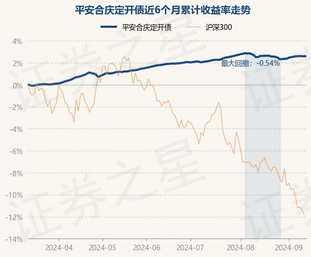 证券之星消息,9月12日,平安合庆定开债最新单位净值为1.0304元,累计净值为1.1924元,较前一交易日上涨0.0%。历史数据显示该基金近1个月上涨0.09%,近3个月上涨0.79%,近6个月上涨2.59%,近1年上涨5.66%。该基金近6个月的累计收益率走势如下图: