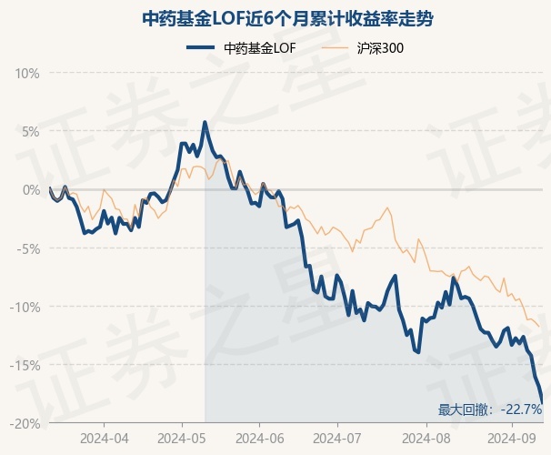 证券之星消息,9月12日,中药基金LOF最新单位净值为0.9748元,累计净值为0.9748元,较前一交易日下跌1.63%。历史数据显示该基金近1个月下跌11.55%,近3个月下跌17.58%,近6个月下跌18.28%,近1年下跌19.51%。该基金近6个月的累计收益率走势如下图: