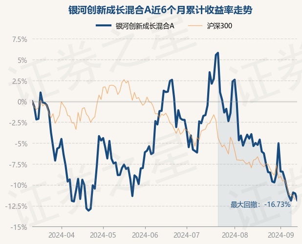 证券之星消息,9月12日,银河创新成长混合A最新单位净值为3.7401元,累计净值为3.7401元,较前一交易日下跌0.9%。历史数据显示该基金近1个月下跌7.72%,近3个月下跌9.33%,近6个月下跌11.84%,近1年下跌18.44%。该基金近6个月的累计收益率走势如下图: