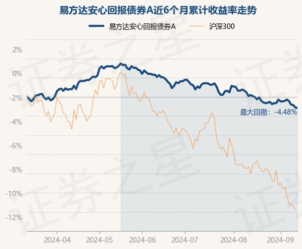 证券之星消息,9月12日,易方达安心回报债券A最新单位净值为1.8649元,累计净值为2.9639元,较前一交易日下跌0.05%。历史数据显示该基金近1个月下跌1.24%,近3个月下跌3.39%,近6个月下跌1.14%,近1年下跌1.25%。该基金近6个月的累计收益率走势如下图: