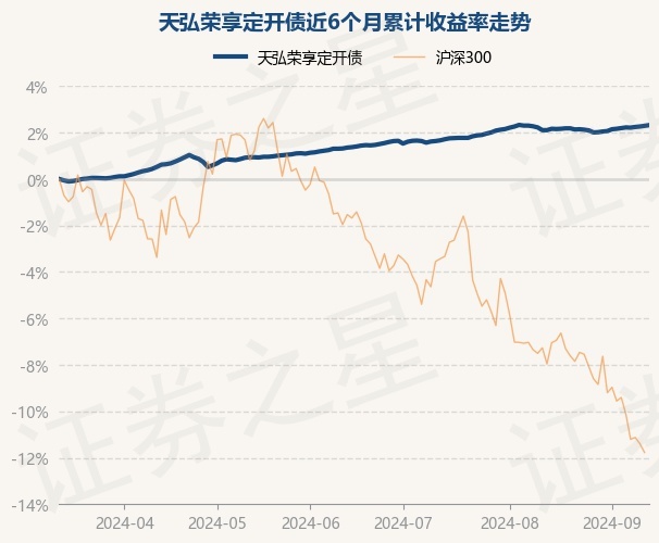 证券之星消息,9月12日,天弘荣享定开债最新单位净值为1.0467元,累计净值为1.2597元,较前一交易日上涨0.03%。历史数据显示该基金近1个月上涨0.21%,近3个月上涨1.0%,近6个月上涨2.32%,近1年上涨5.11%。该基金近6个月的累计收益率走势如下图: