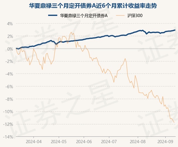 华夏鼎禄三个月定开债券A为债券型-混合一级基金,根据最新一期基金季报显示,该基金资产配置:无股票类资产,债券占净值比112.67%,现金占净值比0.09%。
