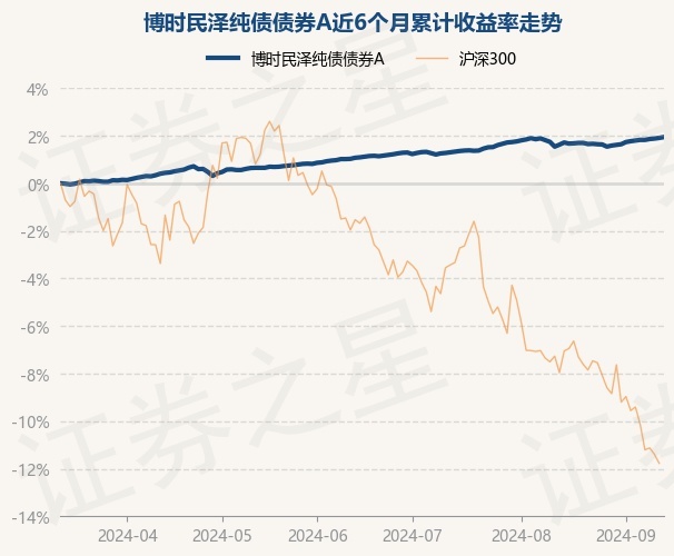 证券之星消息,9月12日,博时民泽纯债债券A最新单位净值为1.1115元,累计净值为1.2676元,较前一交易日上涨0.04%。历史数据显示该基金近1个月上涨0.4%,近3个月上涨0.92%,近6个月上涨1.94%,近1年上涨4.1%。该基金近6个月的累计收益率走势如下图: