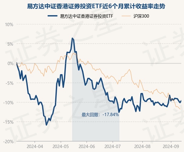 证券之星消息,9月12日,易方达中证香港证券投资ETF最新单位净值为0.9009元,累计净值为0.9009元,较前一交易日上涨0.5%。历史数据显示该基金近1个月上涨0.18%,近3个月下跌3.18%,近6个月下跌9.68%,近1年下跌20.95%。该基金近6个月的累计收益率走势如下图: