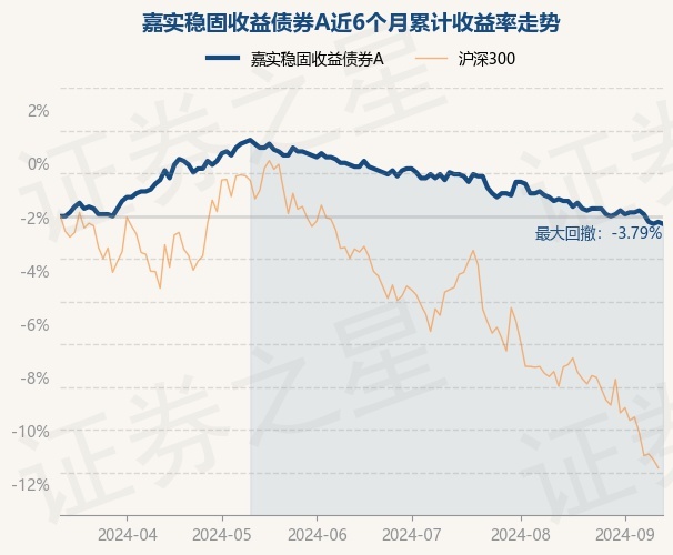 证券之星消息,9月12日,嘉实稳固收益债券A最新单位净值为1.118元,累计净值为1.284元,较前一交易日下跌0.09%。历史数据显示该基金近1个月下跌1.06%,近3个月下跌2.78%,近6个月下跌0.36%,近1年上涨0.0%。该基金近6个月的累计收益率走势如下图: