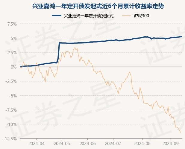 证券之星消息,9月13日,兴业嘉鸿一年定开债发起式最新单位净值为1.0612元,累计净值为1.1027元,较前一交易日上涨0.04%。历史数据显示该基金近1个月上涨0.31%,近3个月上涨0.9%,近6个月上涨5.27%,近1年上涨6.99%。该基金近6个月的累计收益率走势如下图: