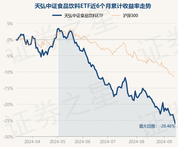 证券之星消息,9月13日,天弘中证食品饮料ETF最新单位净值为0.5652元,累计净值为0.5652元,较前一交易日下跌1.82%。历史数据显示该基金近1个月下跌11.12%,近3个月下跌19.25%,近6个月下跌26.04%,近1年下跌34.19%。该基金近6个月的累计收益率走势如下图: