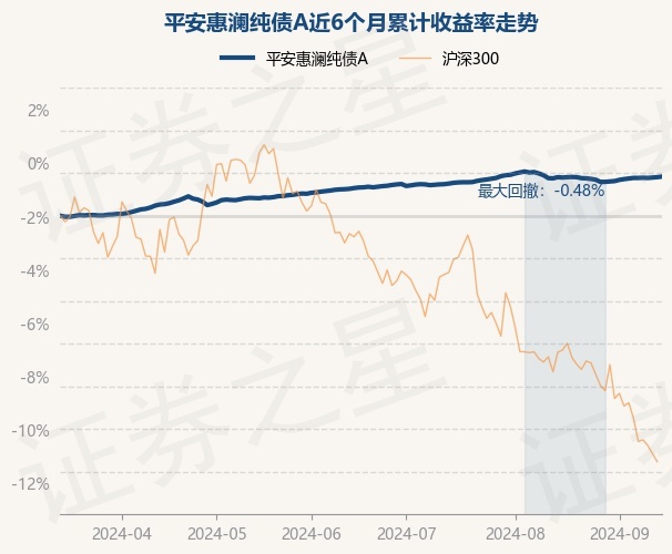 证券之星消息,9月13日,平安惠澜纯债A最新单位净值为1.1119元,累计净值为1.1969元,较前一交易日上涨0.03%。历史数据显示该基金近1个月上涨0.08%,近3个月上涨0.58%,近6个月上涨1.84%,近1年上涨4.05%。该基金近6个月的累计收益率走势如下图: