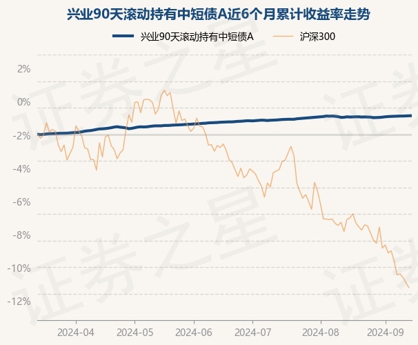 兴业90天滚动持有中短债A为债券型-中短债基金,根据最新一期基金季报显示,该基金资产配置:无股票类资产,债券占净值比109.64%,现金占净值比0.08%。