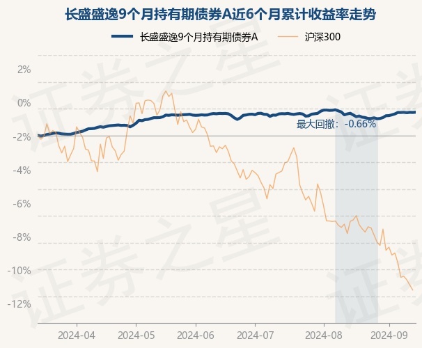 证券之星消息,9月13日,长盛盛逸9个月持有期债券A最新单位净值为1.0448元,累计净值为1.0557元,较前一交易日上涨0.02%。历史数据显示该基金近1个月上涨0.12%,近3个月上涨0.11%,近6个月上涨1.74%,近1年上涨4.36%。该基金近6个月的累计收益率走势如下图: