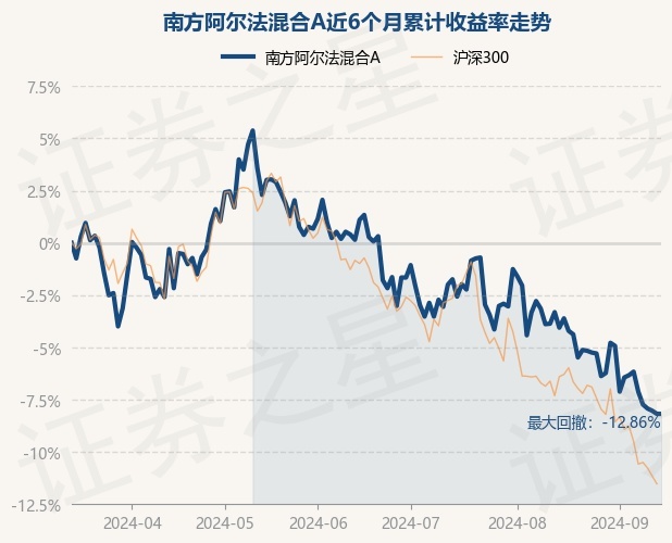 证券之星消息,9月13日,南方阿尔法混合A最新单位净值为0.4282元,累计净值为0.4282元,较前一交易日上涨0.0%。历史数据显示该基金近1个月下跌5.93%,近3个月下跌9.41%,近6个月下跌9.05%,近1年下跌13.41%。该基金近6个月的累计收益率走势如下图: