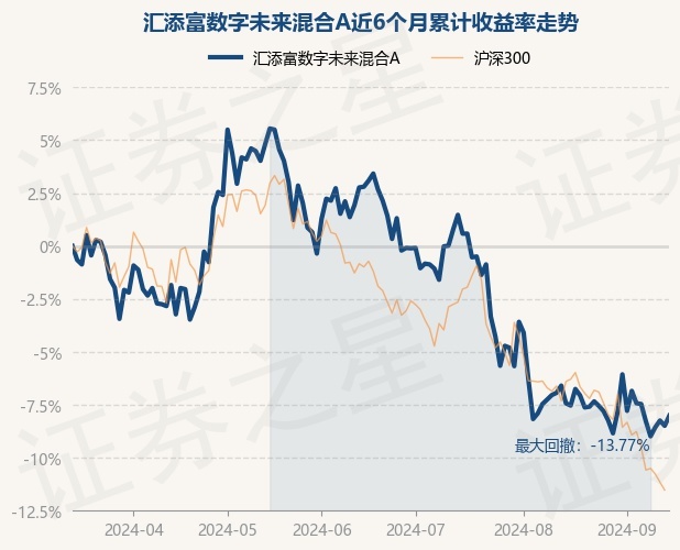 证券之星消息,9月13日,汇添富数字未来混合A最新单位净值为0.519元,累计净值为0.519元,较前一交易日上涨0.52%。历史数据显示该基金近1个月下跌1.52%,近3个月下跌9.75%,近6个月下跌8.01%,近1年下跌17.08%。该基金近6个月的累计收益率走势如下图: