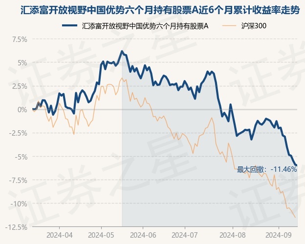 证券之星消息,9月13日,汇添富开放视野中国优势六个月持有股票A最新单位净值为0.5818元,累计净值为0.5818元,较前一交易日下跌0.09%。历史数据显示该基金近1个月下跌3.9%,近3个月下跌8.35%,近6个月下跌5.99%,近1年下跌11.18%。该基金近6个月的累计收益率走势如下图:
