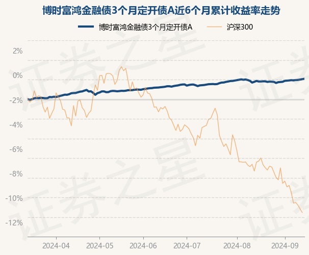 博时富鸿金融债3个月定开债A为债券型-长债基金,根据最新一期基金季报显示,该基金资产配置:无股票类资产,债券占净值比99.98%,现金占净值比0.05%。