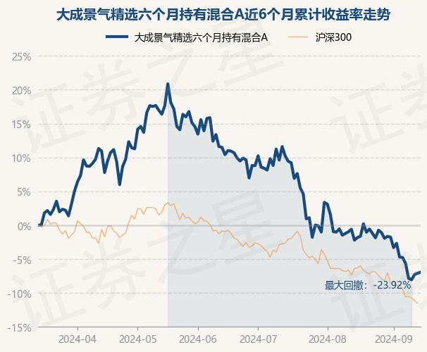 证券之星消息,9月13日,大成景气精选六个月持有混合A最新单位净值为0.7101元,累计净值为0.7101元,较前一交易日上涨0.17%。历史数据显示该基金近1个月下跌6.38%,近3个月下跌16.61%,近6个月下跌6.93%,近1年下跌13.89%。该基金近6个月的累计收益率走势如下图: