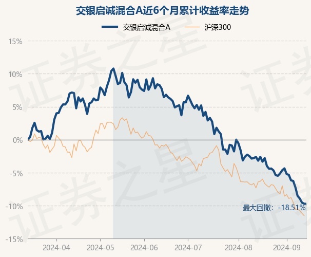 证券之星消息,9月13日,交银启诚混合A最新单位净值为0.9618元,累计净值为0.9618元,较前一交易日下跌0.02%。历史数据显示该基金近1个月下跌7.31%,近3个月下跌16.63%,近6个月下跌9.72%,近1年下跌9.71%。该基金近6个月的累计收益率走势如下图: