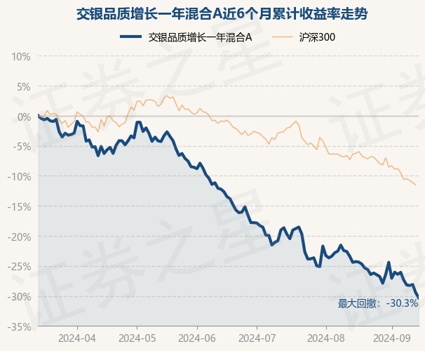 证券之星消息,9月13日,交银品质增长一年混合A最新单位净值为0.5595元,累计净值为0.5595元,较前一交易日下跌1.2%。历史数据显示该基金近1个月下跌8.98%,近3个月下跌20.72%,近6个月下跌30.3%,近1年下跌37.46%。该基金近6个月的累计收益率走势如下图: